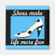 Cute high heel shoe magnet for females who love shoes. Fun black and white and blue design fashionista magnets for 'girls' of any age who might simply love fashion and shopping for clothes.