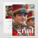 Announce your student's high school graduation with this modern 2-photo graduation party invitation. The front of the invitation has a full-bleed photo covering the announcement along with modern text spelling out "grad", your graduate's name and class year. The back side has a 2nd photo template with a text template to personalise with details about your party or other desired text.