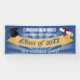 This bold text design has a template to input the name of your high school or college and class year. The blue background contrasts well with the yellow banner and bright white text for an easy-to-read banner. Text reads 'Congratulations! High School Name Class of 20XX we salute you!'