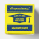 High School graduation class of 2025 senior party Favour Box. Custom colour gift boxes for graduating seniors, college graduate or university students.. Add your own high school name and year. Stylish typography template with tassel cap logo. Bulk graduate gift idea for him or her. Personalise each one or create one design for many. Template with blue and yellow colours.
