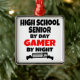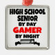This ornament featuring the quote "High School Senior by Day Gamer by Night" is perfect for any high school senior that loves playing video games.