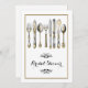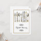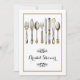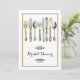 Spoil the bride to be with a beautiful old fashioned high tea bridal shower. DESIGN - An illustration of old fashioned knives, forks and spoons in faux silver and gold have intricate roses, arum lilies and grasses etched into them. A stylish floral swirl in black frames a golden coloured template which may be customised to suit your special wedding rehearsal, engagement or anniversary.