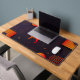 This is an abstract desk mat with a high tech feel due to its geometric shapes. There is also a large breed dog silhouette with a customisable name.