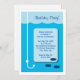 High Tide Fishing invitation card has a fishing line and hook in blue sea water with three fish swimming towards it. This invitation can be used for a birthday party or any other occasion. Customise with your own text. © Morning 6