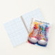 Personalised notebook featuring vibrant watercolor lace-up high tops on a white background, printed on both front and back covers. Great for kids of all ages! Choose your spiral binding colour and select from sketch paper, lined, or graph pages—perfect for school, journalling, or creative notes.