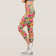 These women's high waisted capri leggings are shown in a multi colour tropical floral palm print design.