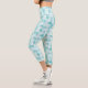 These women's high waisted capris are shown in a aqua and white colours tropical palms design.