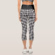 These women's high waisted capris leggings are shown in a black and white houndstooth print design.