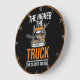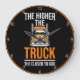 This unique wall clock blends trucking passion with a spiritual sentiment. Featuring an orange semi-truck against a black background and a matching orange rim, it boldly states: "THE HIGHER THE TRUCK THE CLOSER TO GOD". It's a thoughtful and meaningful gift for any truck driver who finds solace and connection on the open road. The design tool can also be used to add custom text if you want your name or company on this clock. You can customise the colour of the frame to any colour you desire by going into the design tool.