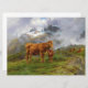 This design features a painting by Rosa Bonheur (1822–1899), who was a French artist best known as a painter of animals. It shows some highland cattle in a mountainous landscape. Highland cattle is a breed of cow that has long horns and a long shaggy coat. There are some snowy mountain peaks in the background; the mountains are surrounded by clouds.