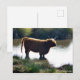 Highland Cattle Pos tCard. I took this photograph of one of the Highland cattle that graze a wildlife reserve wetland pasture near us. Love how it is standing in the water cooling off on a warm Spring day. There is a herd of about 6 cattle who do a great job of keeping the area a good place for wildlife. I love the shaggy coat , the colour and the calm nature of these cattle as they go about their daily lives there.