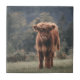 Highland cow calf autumn grass field ceramic tile