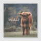 Highland cow calf autumn grass field photograph. Stunning young calf of highland scottish cattle on an autumn grassy field with muted colours. Beautiful dark hairy orange coat contrasting with light yellow green grass and trees in bokeh in background. Custom personalizable monogram with your name and inital on the left.