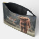Highland cow calf autumn grass field photograph. Stunning young calf of highland scottish cattle on an autumn grassy field with muted colours. Beautiful dark hairy orange coat contrasting with light yellow green grass and trees in bokeh in background. Custom personalizable monogram with your name and inital on the left.