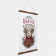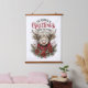 Highland Cow Christmas Art – Rustic Farmhouse Holiday Greeting with Poinsettias & Plaid Wood Topped Wall Tapestry