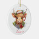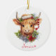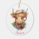 Highland Cow Christmas Santa Hat Personalised Ceramic Ornament