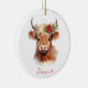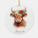Highland Cow Christmas Santa Hat Personalised Name Ceramic Ornament