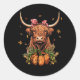 Highland Cow Fall And Leaves Pumpkins Autumn Thank Classic Round Sticker