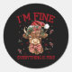 Highland Cow I'm Fine Everything Is Fine Funny Chr Classic Round Sticker