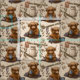 Highland Cow Morning Coffee Cosy Farmhouse Pattern Fabric