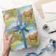 multi Scottish Highland Cow pattern across this bright wrapping paper.