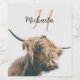 Highland cow portrait custom name initial monogram. Portrait photograph of a majestic orange brown highland cattle on a foggy day with white background.