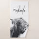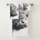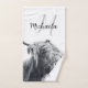 Highland cow portrait initial monogram black white bath towel set