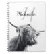 Highland cow portrait initial monogram black white notebook