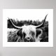 Highland Cow Rustic Boho Chic Black and White Poster