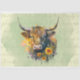 Discover the charm of decoupage with our adorable Highland Cow portrait. Embrace your creativity with vibrant sunflowers and watercolor script background. Elevate your crafts with this delightful paper. Get yours now and bring artistic joy to every project.