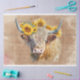Discover the charm of decoupage with our adorable Highland Cow portrait. Embrace your creativity with vibrant sunflowers and watercolor script background. Elevate your crafts with this delightful paper. Get yours now and bring artistic joy to every project.