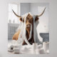 "highland cow bathroom wall art", "scottish highland cow poster" "restroom bath animal print", "cute horned bull with horns", "whimsical naughty mischievious pet", "funny humourous messy humour", "white unrolled mess theme decor", "realistic animals photography picture", "toilet paper roll mischief photo", "highland cow pictures prints"