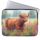 Highland Cow Watercolor Wildflower Field Laptop Sleeve