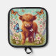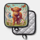 Highland Cow with Butterflies and Spring Flowers Pot Holder