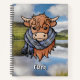 Highland cow cartoon wearing Clark tartan scarf. Custom background landscape on both covers. Custom text.