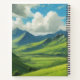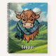 Highland cow cartoon wearing Douglas tartan scarf. Custom background landscape on both covers. Custom text.