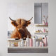 Highland Cow with Pink Beauty Products Bathroom Poster
