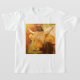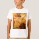 100% cotton so perfect for summer, It is a nicely designed t-shirt, the fabric is soft and the seams finished well, the body of the t shirt has no side seams. I bought a medium size for my two grandsons, aged 9 and 8 it will be slightly big on them but I would rather that than too small