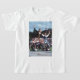 100% cotton so perfect for summer, It is a nicely designed t-shirt, the fabric is soft and the seams finished well, the body of the t shirt has no side seams. I bought a medium size for my two grandsons, aged 9 and 8 it will be slightly big on them but I would rather that than too small