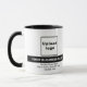 Emphasize your business name. Highlight it. Black combo mug that you can customise to put your business name with highlight. Customisable mug that you can use in your coffee shop, diner or restaurant business to build brand name awareness while your customers enjoy sipping the aromatic and tasty coffee or tea that you served to them. Mug as promotional product, giveaway item or gift to your customers or clients, a marketing strategy to advertise your business or to promote your brand. To customise this mug, upload your business logo, type your business name, address and phone number. Please check the appearance on front and back sides after uploading logo and typing texts. If the appearance is pleasing to you, you can place your order now. If you need to resize and move the logo and texts to fit on this mug or on the size and style that you will choose, please change in the design tool. You can also make other changes according to your preference in the design tool such as changing the highlight colour, font colour and font style.