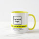 Emphasize your business name. Highlight it. Yellow combo mug that you can customise to put your business name with highlight. Customisable mug that you can use in your coffee shop, diner or restaurant business to build brand name awareness while your customers enjoy sipping the aromatic and tasty coffee or tea that you served to them. Mug as promotional product, giveaway item or gift to your customers or clients, a marketing strategy to advertise your business or to promote your brand. To customise this mug, upload your business logo, type your business name, address and phone number. Please check the appearance on front and back sides after uploading logo and typing texts. If the appearance is pleasing to you, you can place your order now. If you need to resize and move the logo and texts to fit on this mug or on the size and style that you will choose, please change in the design tool. You can also make other changes according to your preference in the design tool such as changing the highlight colour, font colour and font style.