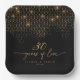 This elegant paper plate is part of a sophisticated collection, featuring luxurious geometric backgrounds and intricate, shimmering gold details. This classic design exudes a glamourous charm, with a colour palette of black and glowing gold tones. Your name and anniversary date are proudly displayed with the expression '30 years of love'. Search ID1165 to see other products in this design set.