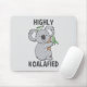 Highly Koalafied - Highly Qualified. A cute grey Koala cartoon graphic drawing with a koala bear pun. Funny and sweet wild animal design. Australian wild baby animal on a eucalyptus tree with gum leaves