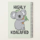 Highly Koalafied - Highly Qualified. A cute grey Koala cartoon graphic drawing with a koala bear pun. Funny and sweet wild animal design. Australian wild baby animal on a eucalyptus tree with gum leaves