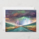 A highway road with thundering lightning photo image. Beautiful thunder storm with enhanced colours landscape scenic aesthetic.