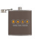 The flask itself is fine. It’s a cheap flask, obviously bought in bulk, however am prepared to overlook that. Given that it is a personalized item, I would have liked to have seen gift boxing instead of the generic packaging. Terrible printing, and/or quality. It’s a cheap, tacky vinyl. It is not cut straight and is also applied in a way that it is overhanging the bottom, causing the glue to catch on items and it will eventually roll and tear, damaging the wrap.