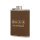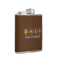 The flask itself is fine. It’s a cheap flask, obviously bought in bulk, however am prepared to overlook that. Given that it is a personalized item, I would have liked to have seen gift boxing instead of the generic packaging. Terrible printing, and/or quality. It’s a cheap, tacky vinyl. It is not cut straight and is also applied in a way that it is overhanging the bottom, causing the glue to catch on items and it will eventually roll and tear, damaging the wrap.