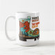 Hike More Worry Less camping mug. Gift this funny mug to the hiker / camper in your life. This design features a beautiful camping scene inside of a hiking boot.