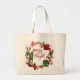 Hiker's Christmas Tote Bag with backpack, coffee cup, camping supplies, boots, red cardinal.