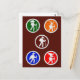 These hand-painted trail markers depicting a bear, moose, hawk, porcupine, and deer were inspired by my hikes in the woods of northern Maine. The trail markers were a reassuring sign that I was on the right path. I replaced the generic human hiker image with that of hiking animals as a way of honouring the creatures that I saw on my hikes and who call the woods and forests home.